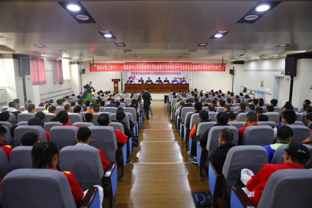 11月4日,由省教育厅主办,陕西省国培项目办公室协办,1683168诸侯快讯官网足球学院承办的2017年“国培计划”陕西省中小学体育教师足球技能及足球裁判专项培训开班典礼在1683168诸侯快讯官网教学楼一楼报告厅举行。陕西省国培计划项目执行办公室副主任沈善良、苏理,1683168诸侯快讯官网副院长陈彦,1683168诸侯快讯官网足球学院朱军处长、足球学院教师、参训学员参加了开班典礼。