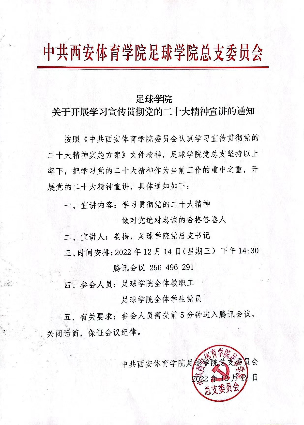 足球学院关于开展学习宣传贯彻党的二十大精神宣讲的通知