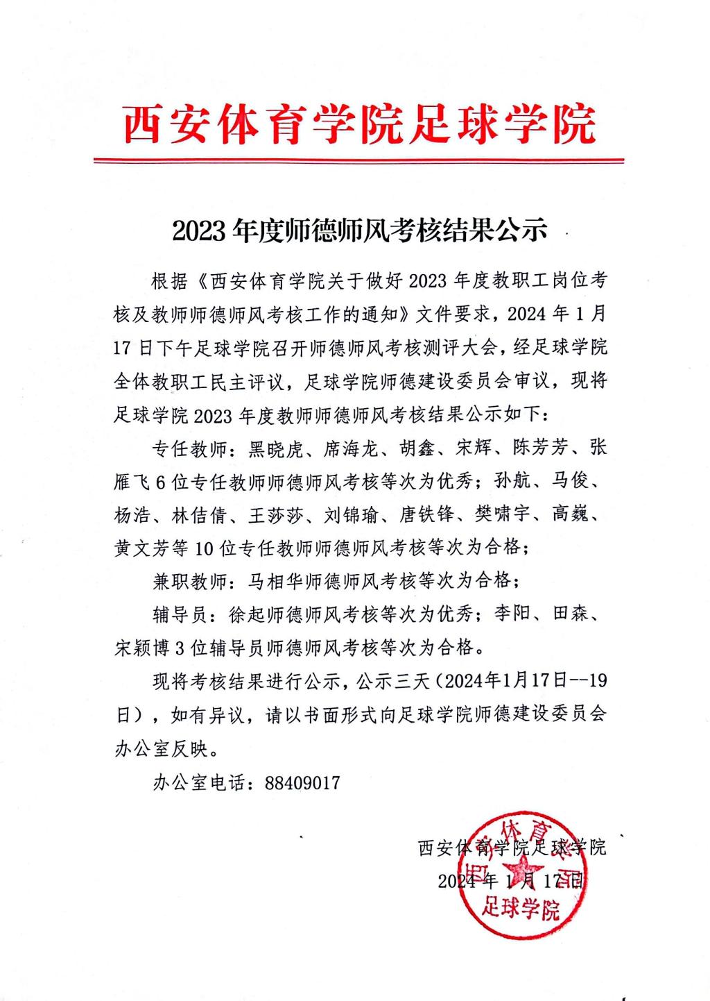 足球学院2023年度师德师风考核结果公示
