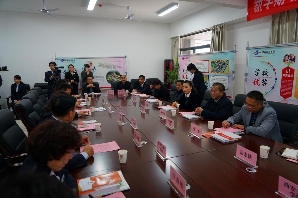随后,沣西实验学校校长杨振德对沣西实验学校情况作介绍,他说,沣西实验学校是由西咸新区沣西新城管委会主导的第一所九年一贯制民办学校。学校占地面积约80亩,建筑面积5.7万多平米,总投资2亿余元。计划2018年招收初一新生,3-5年满额后小学部设定36个班,中学部设定18个班,招收教师140余人,学生2600余人。杨校长表示,沣西实验学校会为前来实习、实践的学生提供双向通道,共享智慧教育、奠定精彩人生。