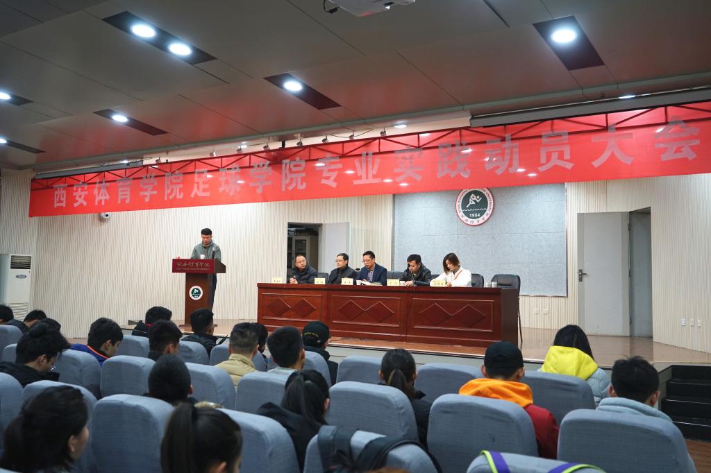 12月15日,1683168诸侯快讯官网足球学院在教学楼一楼报告厅召开学期专业实践动员大会。足球学院院长朱军、陕西浪潮足球俱乐部总经理常伟、足球学院特聘教授杨钢、足球教研室主任席海龙、辅导员南腾、金梦丹和足球学院全体学生参加了此次会议,会议由南腾主持。