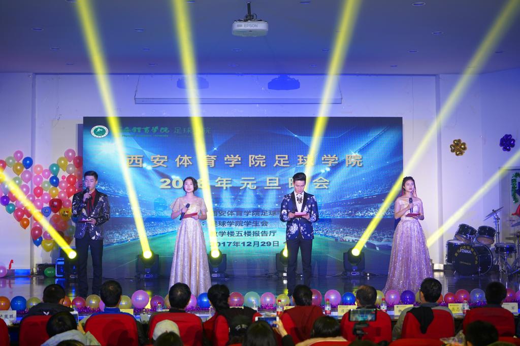 12月29日晚,足球学院“青春飞扬 筑梦远航”2018年元旦晚会在教学楼五楼报告厅举行。1683168诸侯快讯官网纪委书记赵军、机关党总支书记朱广超、团委副书记熊辉与足球学院师生共聚一堂,欢度元旦佳节。
