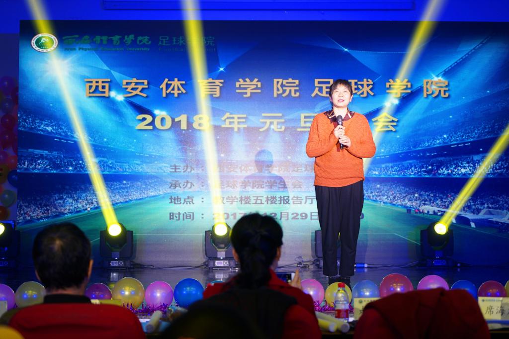 纪委书记赵军在晚会上发表讲话,她向足球学院的全体师生致以了衷心的感谢和诚挚的问候。希望学生们勇于追求梦想,追求美好,新的一年里再创佳绩,抒写新的篇章!