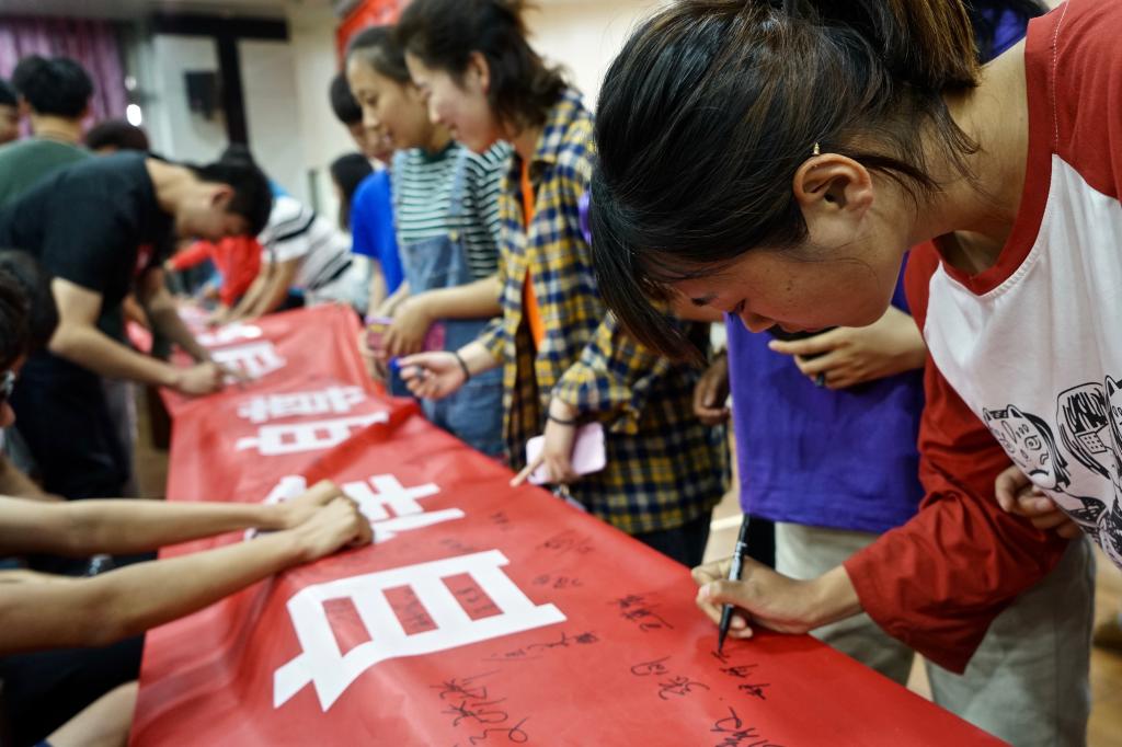 会议之前,全体学生举行了“自律、自尊、志强,做文明合格大学生”签名仪式。