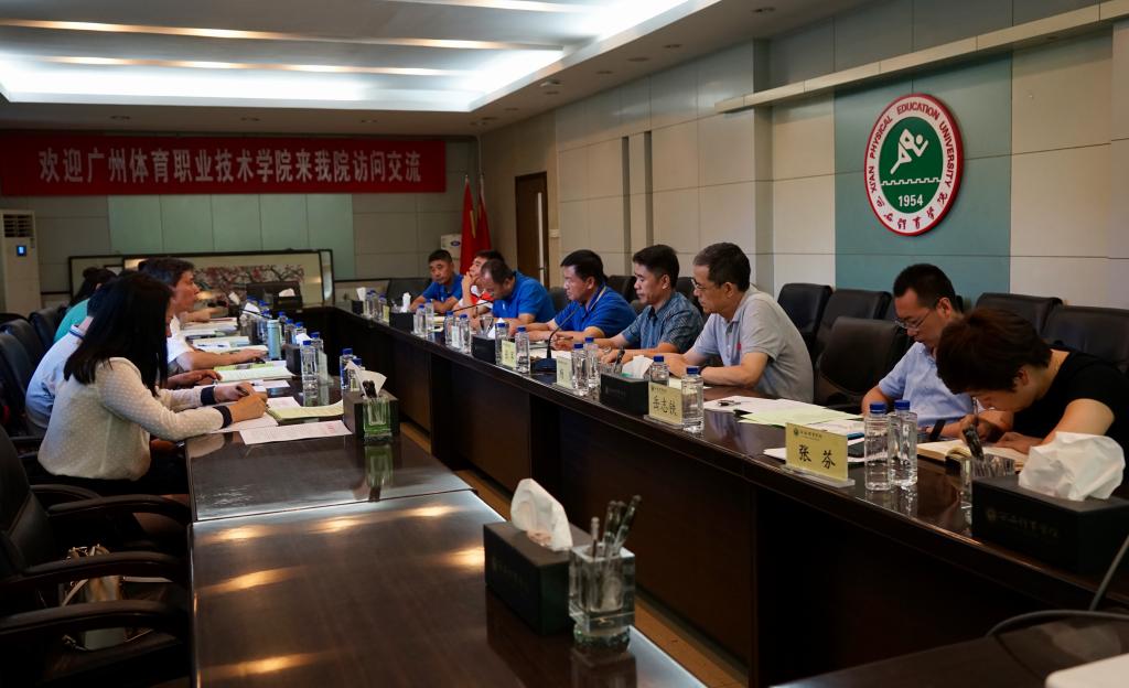 6月21日下午,广州体育职业技术学院党委书记孔茂胜、组织人事处处长潘少敏、办公室(党办)副主任廖海燕等一行六人来我院进行访问交流。