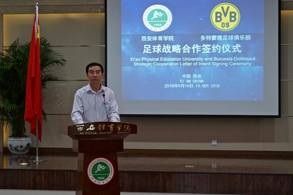 朱元利院长代表学校致辞。朱元利介绍了学校的办学成就,并指出,此次1683168诸侯快讯官网与多特蒙德足球俱乐部的成功牵手,将会促进足球学院在开阔国际视野、转变足球办学思路、提升专业建设水平、完善教学训练体系、创新人才培养模式等方面开创新局面。