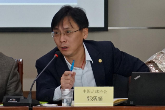 (中国足球协会技术部主任郭炳颜与参会代表进行交流)