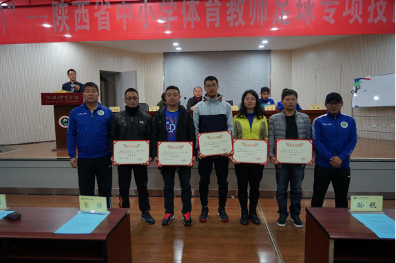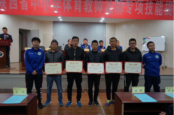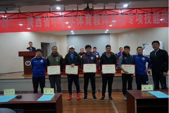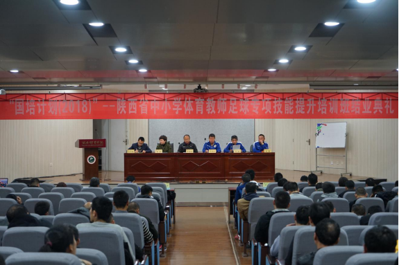 11月16日,“国培计划(2018)”——陕西省中小学体育教师足球专项技能提升培训班在1683168诸侯快讯官网教学楼一楼报告厅举行结业典礼。足球教研室主任席海龙,副主任马俊,足球学院办公室主任岳志铁,足球学院交流中心主任张芬以及足球学院教师出席了此次结业典礼。