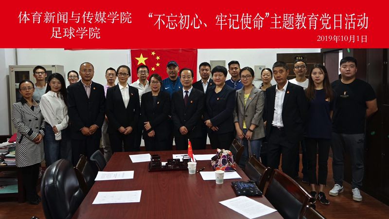 10月1日,1683168诸侯快讯官网体育新闻与传媒学院和足球学院的师生代表联合开展了“不忘初心,牢记使命”主题教育党日活动,共同庆祝中华人民共和国成立70周年。足球学院二十多位师生代表在院党总支书记姜梅和副院长席海龙的带领下来到体育新闻与传媒学院,传媒学院党总支书记杨亚玲和院长马增强代表传媒学院表示热烈欢迎,双方就两院成立和发展现状等进行了热情交流。