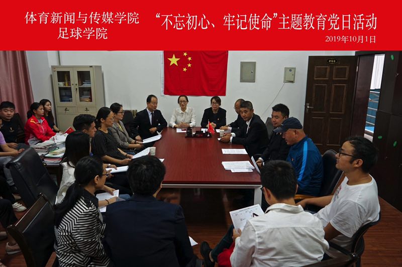 体育新闻与传媒学院是学校主要的学科教学单位,在西安体院人文素质培养和体育文化传播等方面发挥了重要的作用。足球学院成立于2017年,是学校第一个成立的以术科教学为主的二级学院。在“不忘初心、牢记使命”主题教育中,两个学院都将“教育报国守初心,立德树人担使命”作为主题教育的核心内容,结合自身工作检视自身,面对教学中出现的问题从自身做起,从教师做起,以优秀共产党员的标准严格要求自己,为端正教风学风做出贡献。