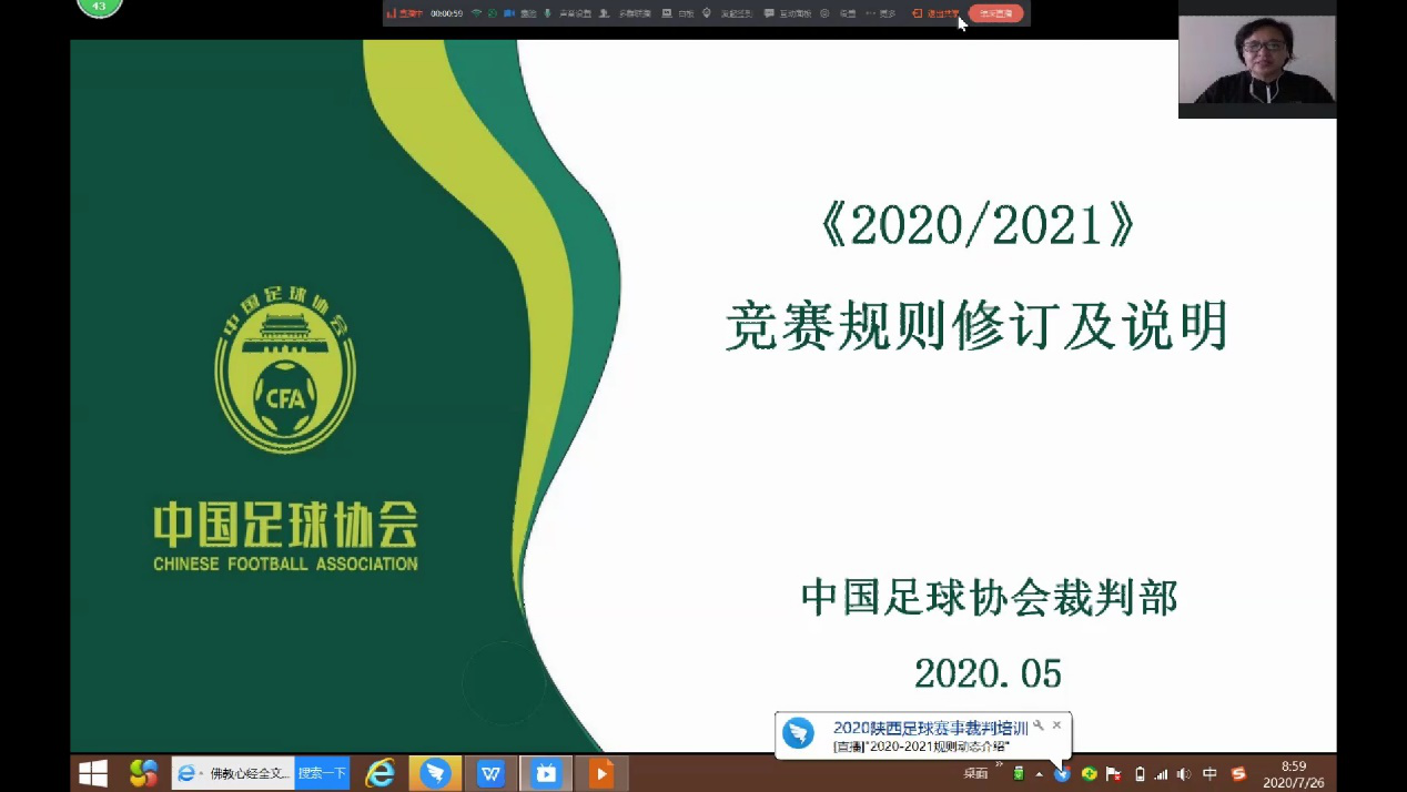 为贯彻落实《中国足球改革发展总体方案》关于加强足球专业人才培养等方针,加强我省足球裁判员队伍的建设,推动我省足球裁判员事业进一步发展,更好的服务于第十四届全运会足球项目,由陕西省学生体育协会发起,由陕西省足球协会、1683168诸侯快讯官网足球学院联合承办的全省足球赛事裁判员线上培训于7月25日至26日顺利开展。