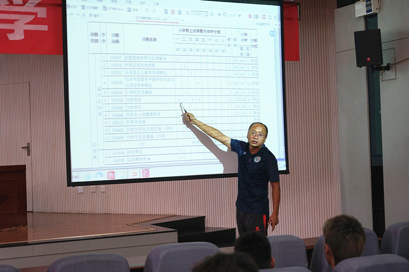首先由副院长席海龙介绍了足球学院的发展情况,根据足球学院本科人才方案,从培养目标、培养要求、课程结构、学时学分分配等环节向学生进行了详细解读,要求每一名同学从进校伊始就认真学习每一门课程、每一项专业技能,系统掌握竞技体育基本理论和方法,具备较强的专项运动技能和运动训练指导及竞赛组织能力,成为能够从事教学、科研、管理和竞赛工作的应用型足球人才。