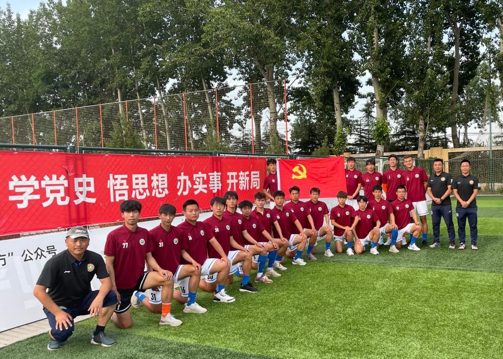 比赛间隙,足球教研室党支部书记宋辉带领大家学习了习近平总书记在党史学习教育动员大会上的重要讲话;学习了中央苏区时期,党的第一个全国性体育组织“中华苏维埃共和国赤色体育运动委员会”因地制宜开展体育活动,从实际出发制定体育政策,为中国体育事业发展增添宝贵的经验财富;学习了女排“五连冠”等一系列重大历史事件,以时间为脉络串联呈现中国由体育弱国到体育大国,乃至向体育强国迈进的蜕变历程。