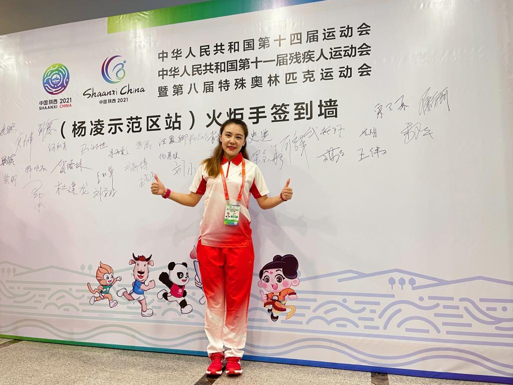 9月2日上午,十四运会和残特奥会火炬传递活动在杨凌示范区进行。我院教师王莎莎由陕西省体育局推荐,作为第56棒火炬手参加火炬传递。