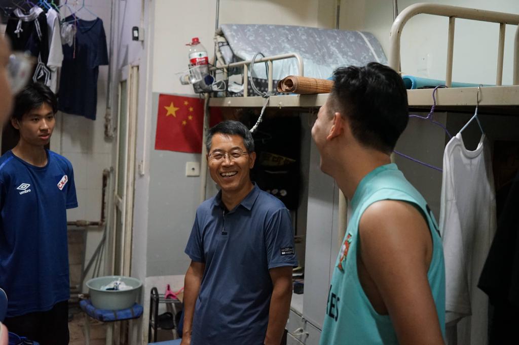 为进一步了解学生学习生活环境,加强学生宿舍安全管理,近日,足球学院联系校领导校党委副书记、纪委书记、监察专员杨芳乾,院长席海龙,学工办副主任李阳,辅导员田森4人深入学生宿舍走访检查,亲切看望我院学生。