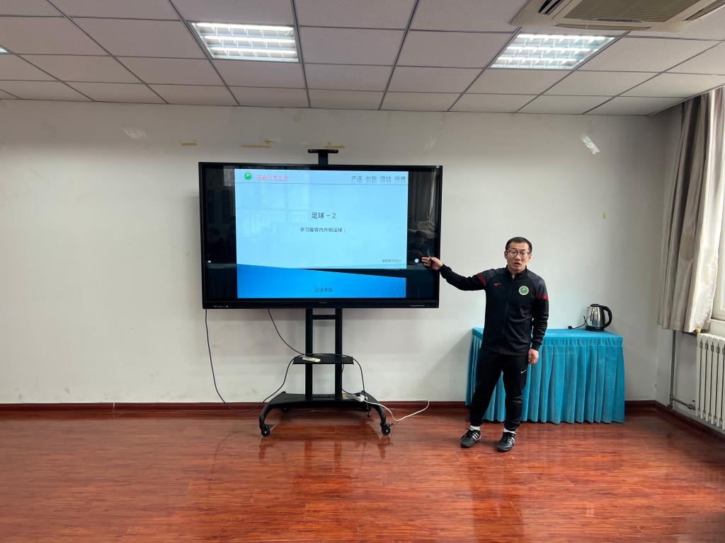 足球学院邀请体操教研室杨辉、运动训练学教研室谢宜轩、足球教研室退休教师王洪武与足球学院院长席海龙、副院长方程共同组成评审组。教师“上好一门课”为竞赛理念,从教学设计、课堂教学和教学反思方面进行评比,参赛青年教师按照抽签顺序依次进行了精彩的现场教学展示。评审组全体成员,结合选手表现,从课程设计、课程授课内容、教学具体环节、课程反思等各个角度和层面作全面、细致的点评。