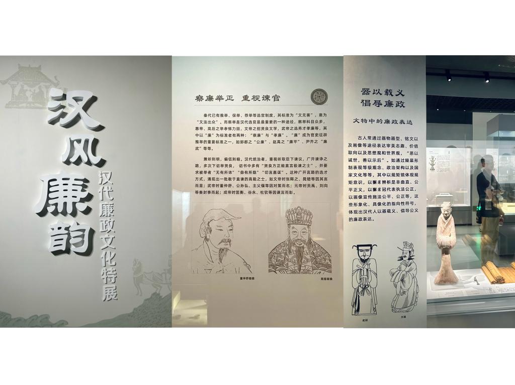 全体党员干部在展馆讲解员的引导下,参观学习了“汉风廉韵—汉代廉政文化特展”。展览由汉代廉政思想、廉政制度、廉政文化、廉政人物四部分组成,通过文物、文献、人物相结合的方式,解读了汉代廉政文化思想的独特魅力,给人以深刻思考和有益启发。崇廉尚廉,从古至今深深植根于人们的心中,“欲知平直,则必准绳;欲知方圆,则必规矩”,没有规矩不成方圆,外有约束、内有尺度才能秩序井然。通过汉代廉政文化的代表性人物与文物,了解到了它们背后的历史故事,深刻体会到了廉政文化的深厚内涵和历史演进。