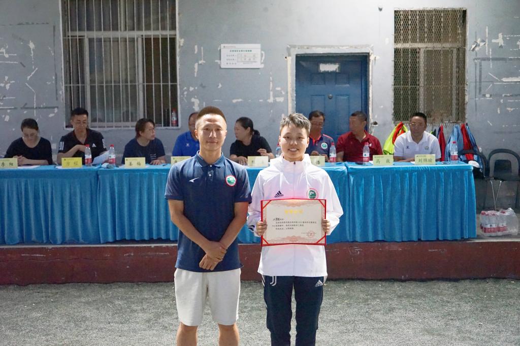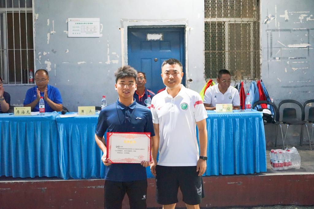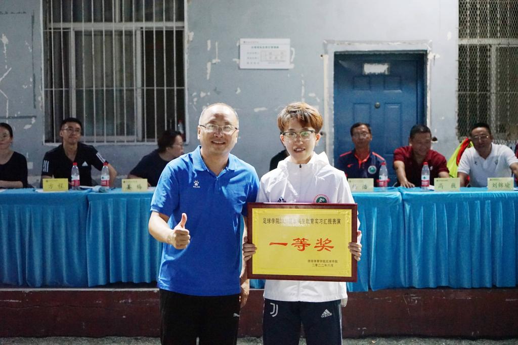 足球教研室党支部书记宋辉为教学实践比赛二等奖2019级2班宋志勇同学颁奖