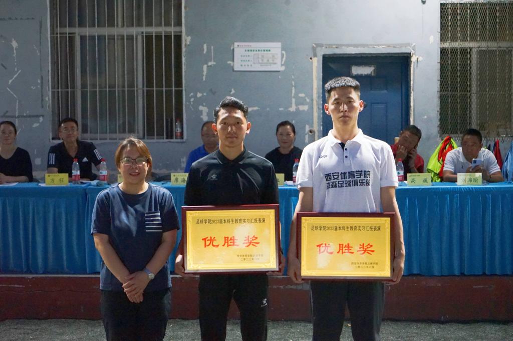 6月29下午18:30足球学院2023届本科生足球场举行了教育实习汇报表演活动。足球学院党政负责人、全体教职工、2023届全体 同学参加了此次活动。活动还邀请了西安交通大学附属中学体育组组长张立老师担任裁判及点评嘉宾,本次活动由副院长方程主持。