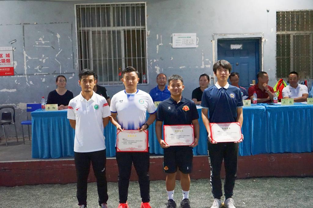 足球学院院长席海龙为团体一等奖2019级3班颁奖