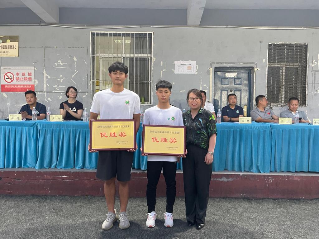 比赛结束后,由裁判长席海龙教授宣布本次汇报表演成绩。2020级3班获得团体一等奖,1班、2班获得优胜奖。2020级3班刘潇月同学获得个人教学实践比赛一等奖,2020级3班宋若琪同学获得二等奖,2020级1班刘志伟同学获得三等奖,2020级2班王嘉峰、杨小周同学、2020级1班房临瀚获得优胜奖